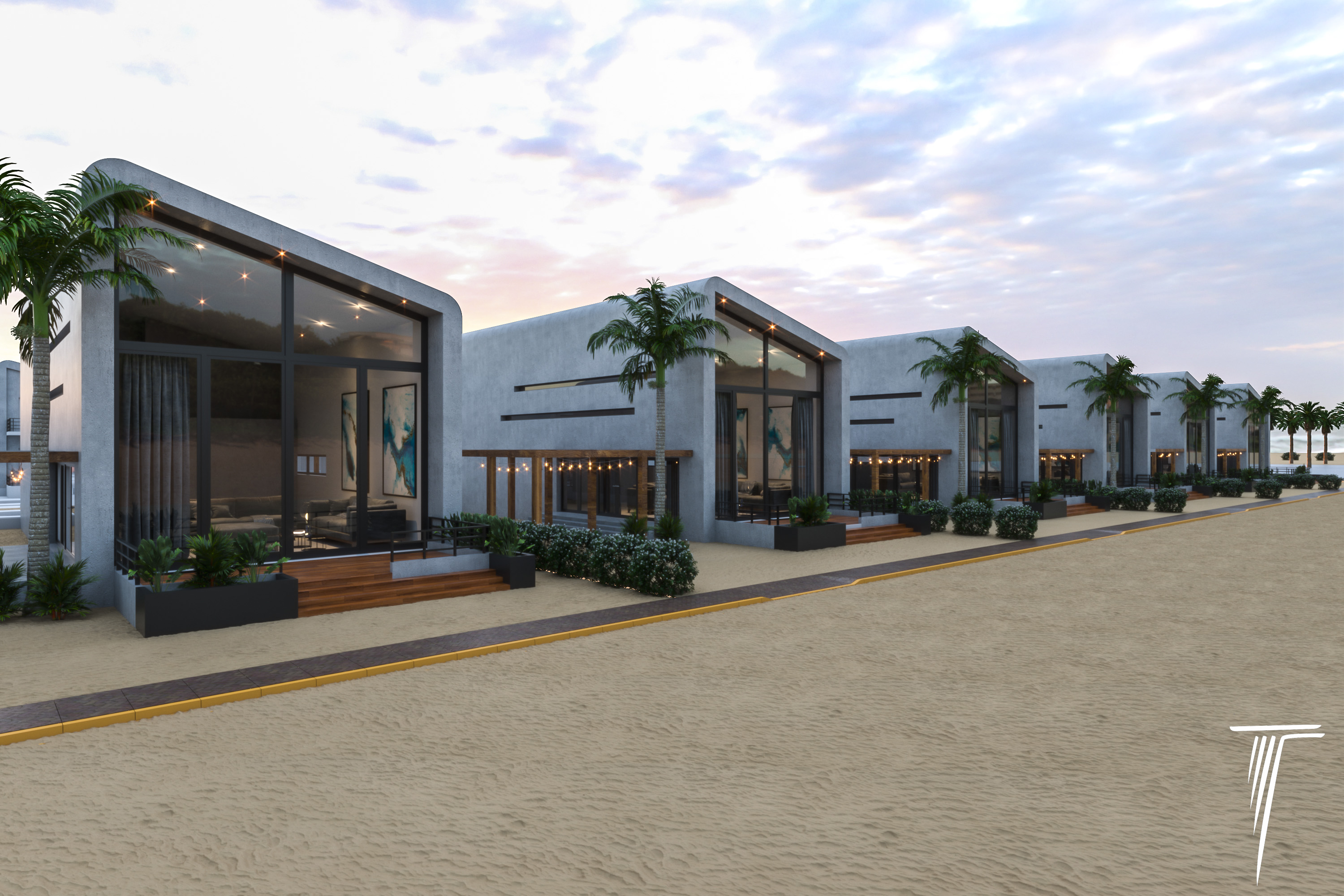Conjunto de casas habitación con una superficie de 120 m²  para arrendamiento. Cada una incluye vestíbulo, sala, comedor, cocina, cuarto de servicios, 3 recámaras, 2 baños completos y área de terraza.