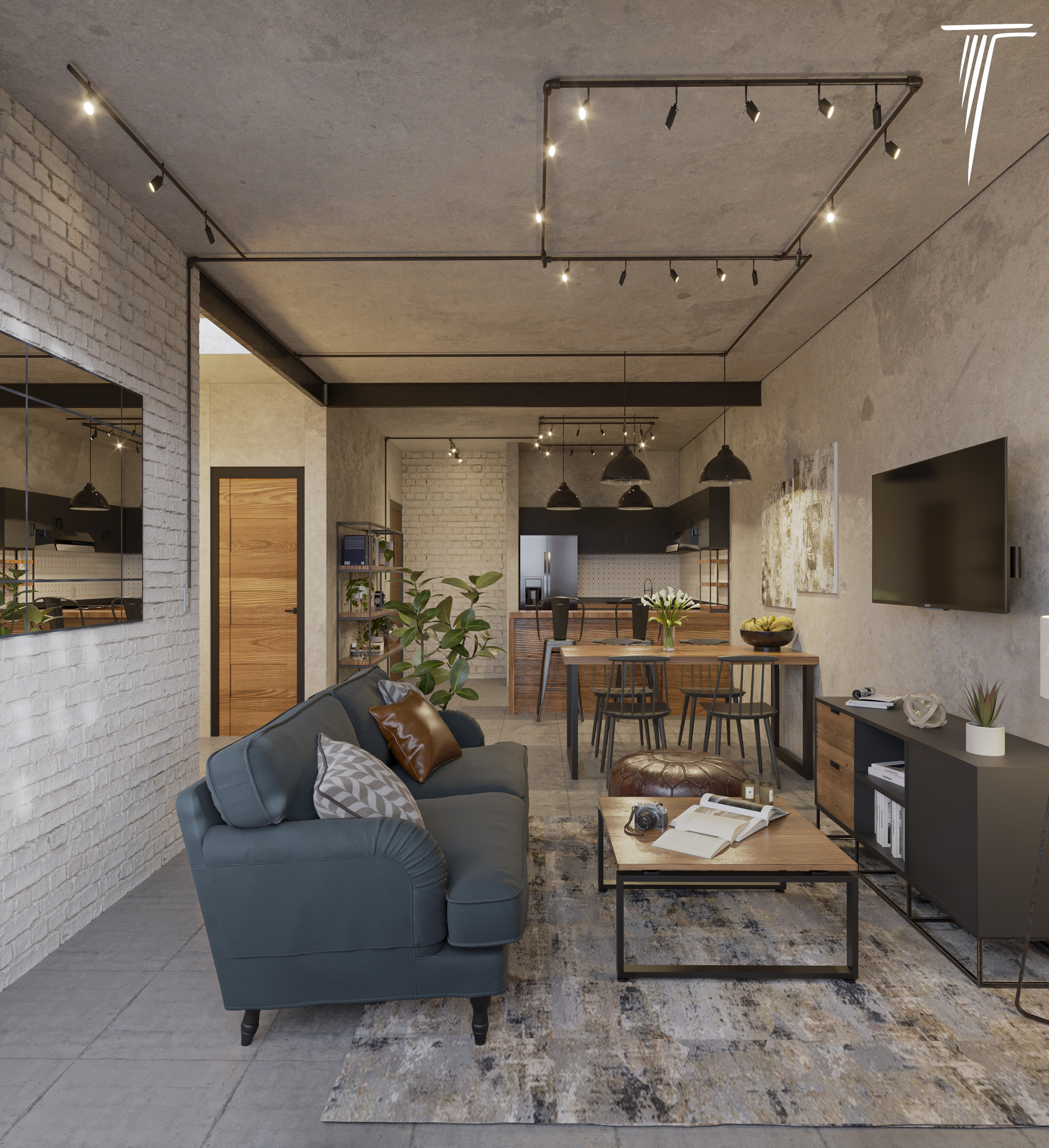 Conjunto de 3 departamentos para arrendamiento con una superficie de 243.54 m². Cada departamento de 81.18 m² incluye sala, comedor, cocina, 2 recámaras, 1 baño completo, cuarto de servicios; tambien cuenta con espacios exteriores de área de terraza, asador  y  estacionamiento  para 3 automóviles.