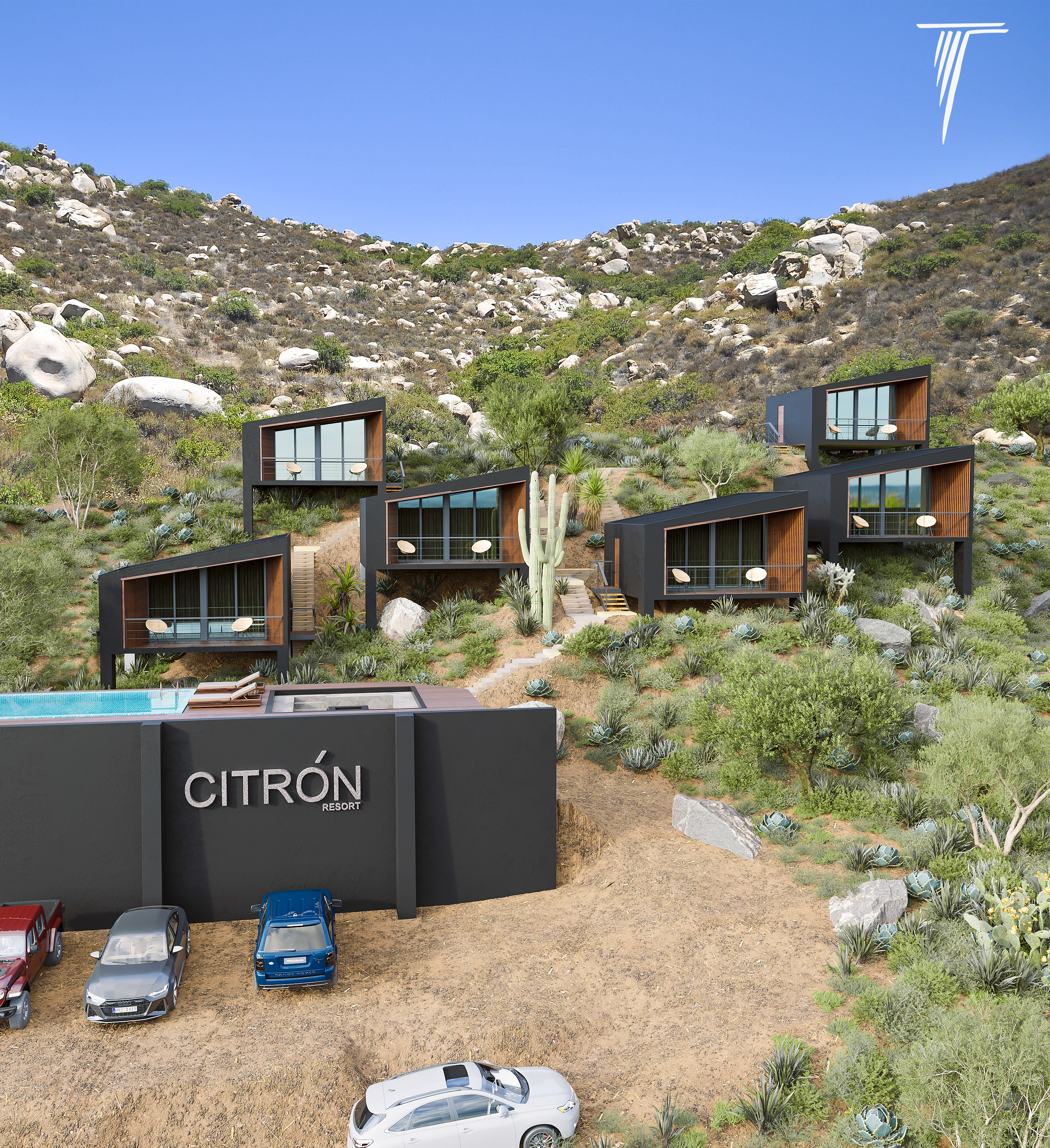 Conjunto de 5 cabañas con una superficie total de construcción de 239.95 m² para arrendamiento. Cada cabaña cuenta con una superficie de 47.99 m², incluye  área de sala, dormitorio, baño completo y terraza. El área exterior incluye una alberca comunal con fogatero y estacionamiento.