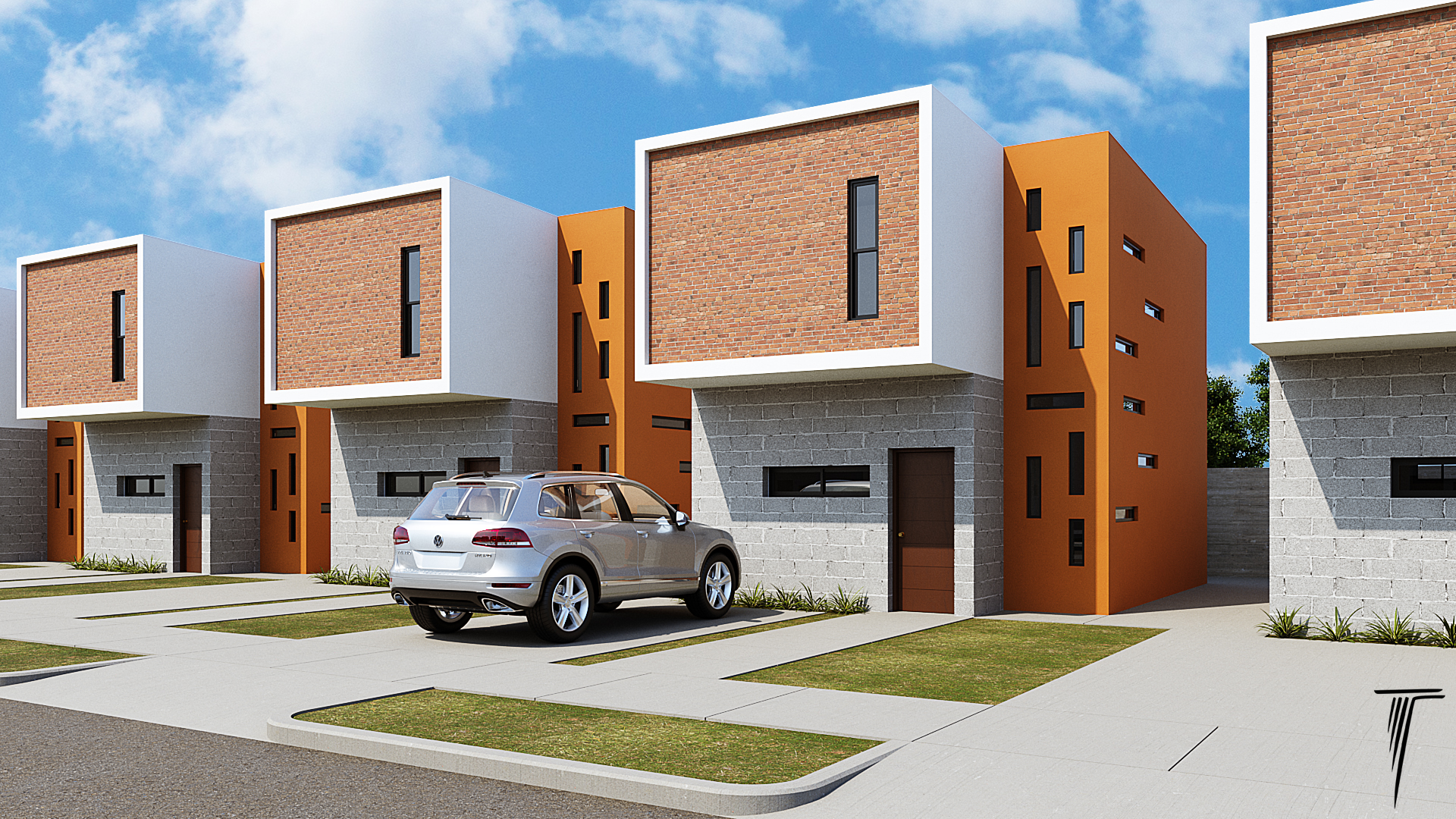 Conjunto habitacional para arrendamiento con una superficie de 80 m². Cada casa incluye sala, comedor, cocina, 2 recámaras, 1 baño completo y 1 de visitas.