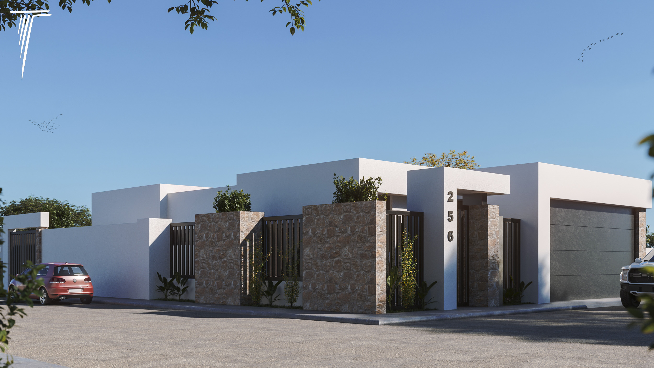 Casa residencial con una superficie total de construcción de 250 m². Incluye sala comedor, cocina, 2 recámaras, 2 baños, 1 walking closet y estacionamiento para 2 automóviles.