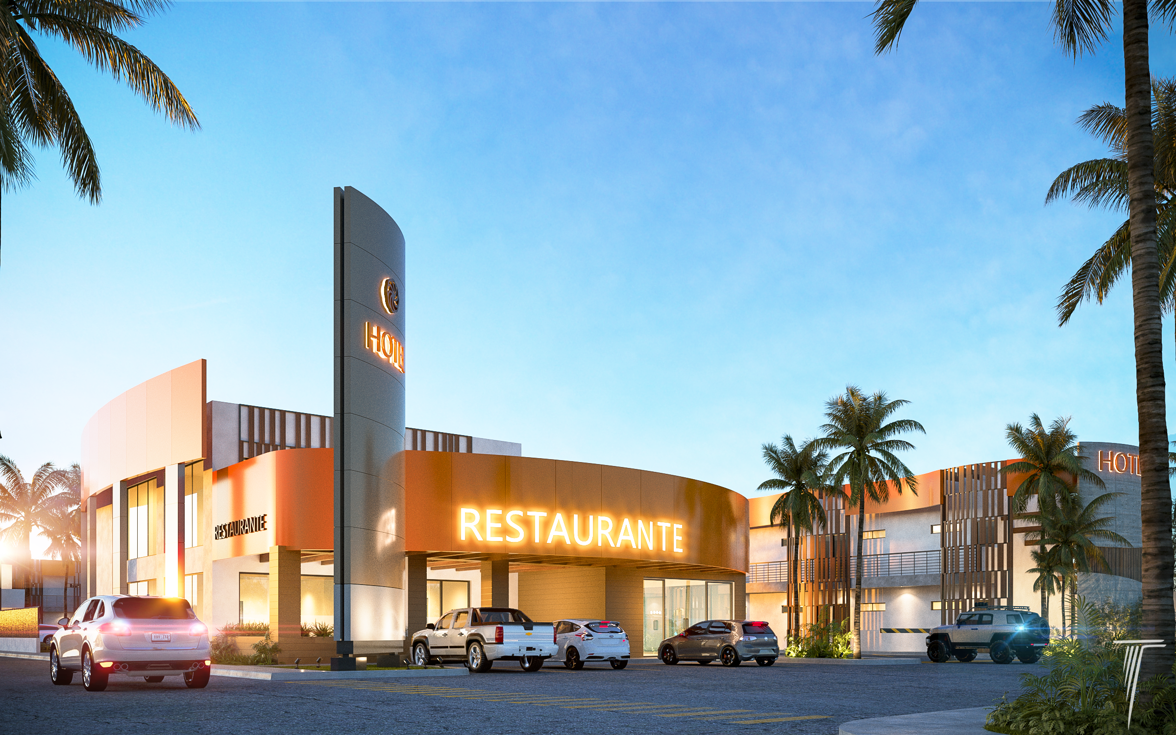 Conjunto de hotel incluye 40 habitaciones, área de restaurante,cafetería y estacionamiento.